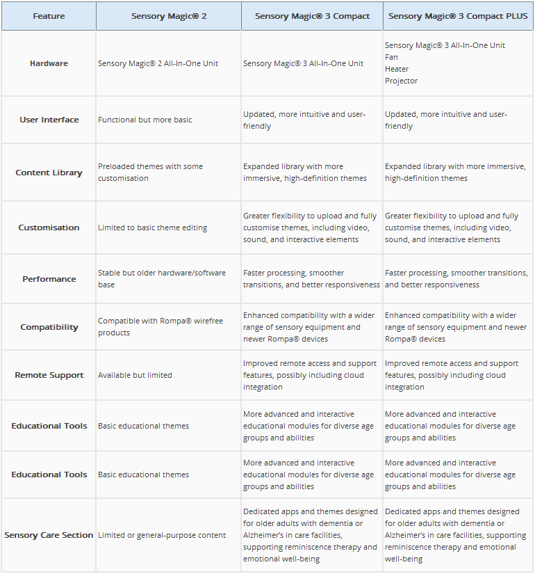 Sensory Magic® 3 Compact isn’t just a technological upgrade—it’s a transformative experience designed to enrich lives. At its core, it’s about creating moments that matter: moments of joy, calm, discovery, and connection.